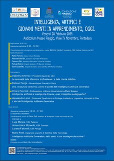 CONVEGNO: INTELLIGENZA ARTIFICIALE Giovani menti in apprendimento, oggi 28 febbraio 2025 Auditorium Museo Piaggio,Viale IV Novembre Pontedera | ![]() | ||
