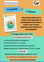 ![]() | la rivista Insegnare e il Cidi Torino presentano il libro: LA SCUOLA E IL LAVORO Documento politico per un lavoro emancipato e dignitoso e per una scuola che realizzi integralmente l’essere umano per partecipare, iscriversi al link: https://forms.gle/ |